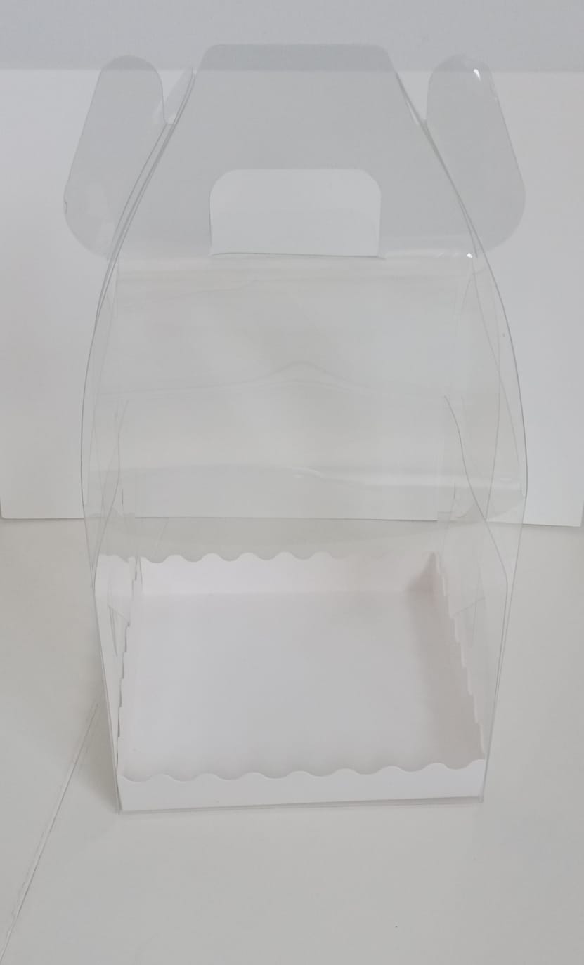 קופסא לעוגה שקופה 16*16*16 פי. וי. סי עם ידית נשיאה