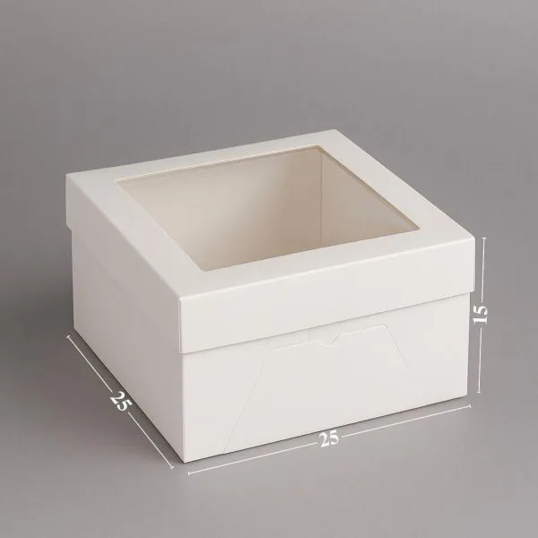 קופסה קרטון לעוגה | לבן | חבילה 10 יח' | 25X25X15 ס"מ