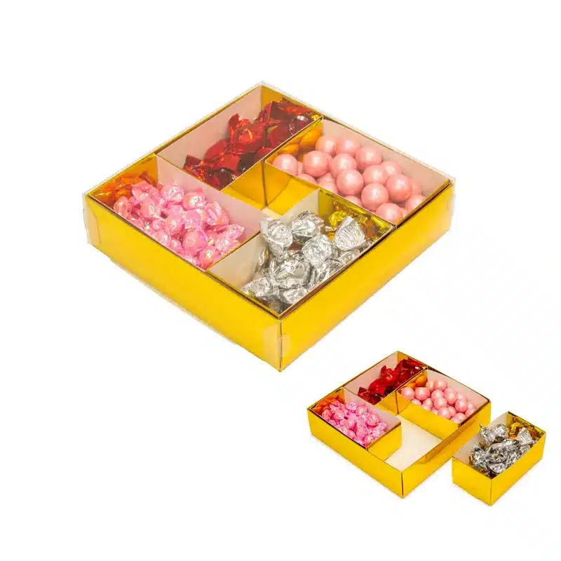 קופסת קרטון זהב מכסה PVC שקוף 4 תאים 20/20/5 ס"מ